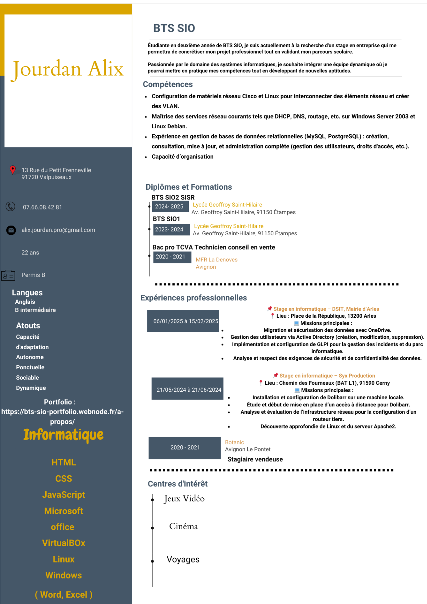Je suis actuellement étudiant au lycée Lycée Geoffroy Saint-Hilaire a Etampes 🗺️ en seconde année de BTS SIO (Services Informatiques aux Organisations) dans l'option SISR (solutions d'infrastructure, systèmes et réseaux ) qui en gros est une option spécialisée pour le Réseaux informatique 💻